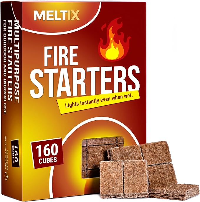 MELTIX 160pk All-Natural Fire Starters for Campfires, BBQ, Grills, Fire Pits & Wood Stoves β Odorless, Waterproof, Long-Lasting Kindling Cubes