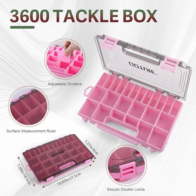 - Perfect Size: Size:14.96”x9.06”x7.48”.With its generous main compartment, this fishing tackle bag can accommodate up to 3 size 10.83”x7.28”x1.57” tackle boxes(Included), providing you with plenty of space for all your essential fishing gear. Additionally, it features six external storage pockets, allowing for organized storage and easy access to your fishing accessories