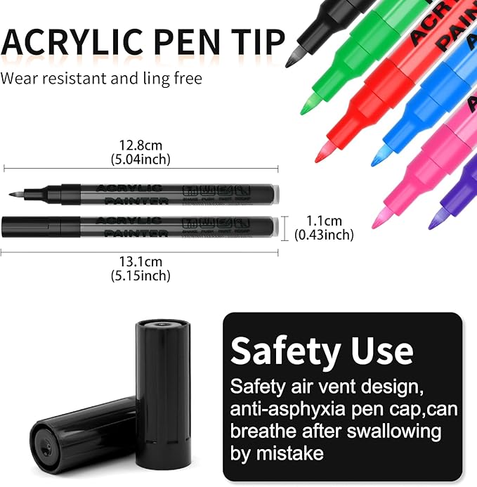 - Non-Toxic & Safe: Alitastro premium acrylic pens water based with smooth flow,Non-Toxic and odorless, waterproof, quick-drying, acid-free, strong coverage, environmental friendly that it is safe and easy use for the user. Our acrylic markers let you can rest easy as your family channel their creativity or as you crush that project. Plus, our pens are designed to valve-action tio and prevent leaks, ensuring a comfortable good grip