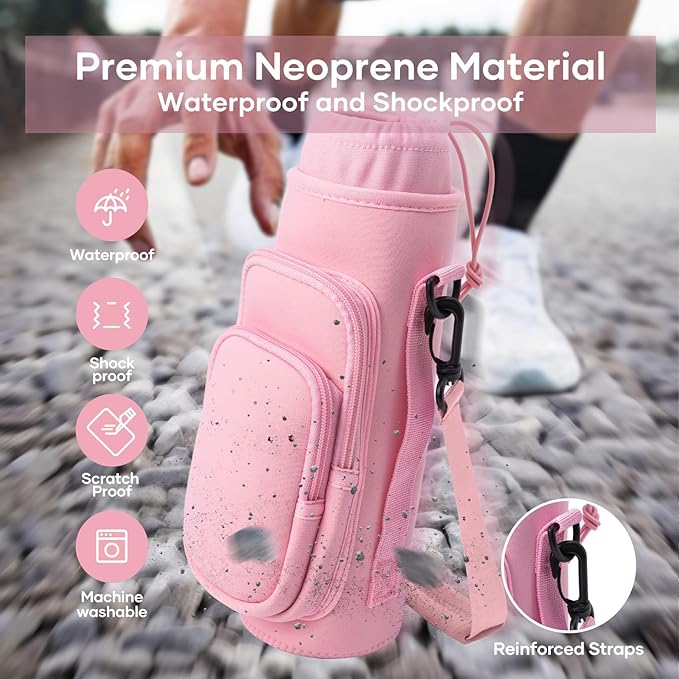 - Protect & Enhance Your Tumbler: The water bottle sleeve adopts thickened insulated neoprene material, crafted with reinforced sewing, soft,stretchy and wearable, protect your tumbler such as Stanley Cup,Owala bottle from collision, and scratches, offering superior protection against drops and silence when setting down.This water bottle carrier bag with straps could also free your hands, relieve you from hand carrying a heavy metal bottle/Tumbler all day.