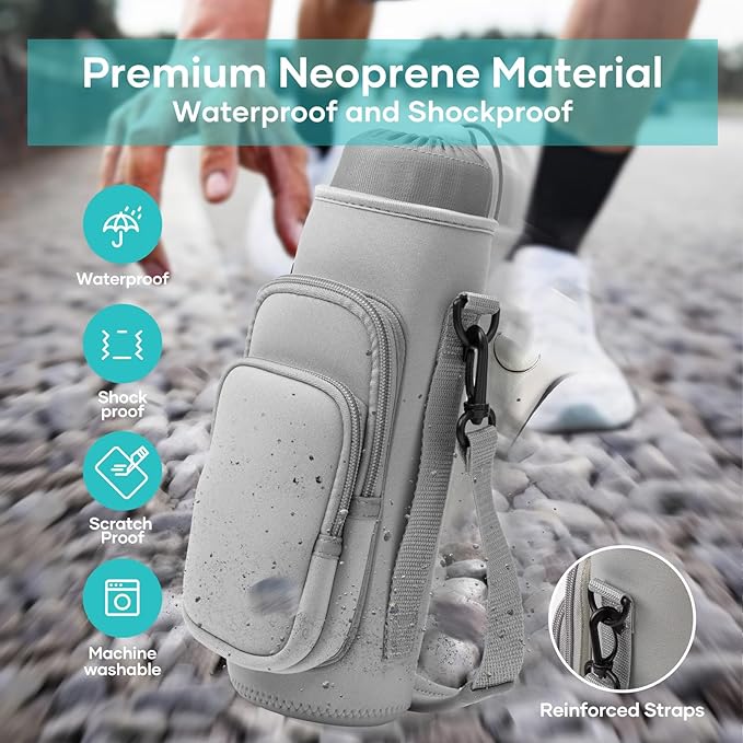 - Protect & Enhance Your Tumbler: The water bottle sleeve adopts thickened insulated neoprene material, crafted with reinforced sewing, soft,stretchy and wearable, protect your tumbler such as Stanley Cup,Owala bottle from collision, and scratches, offering superior protection against drops and silence when setting down.This water bottle carrier bag with straps could also free your hands, relieve you from hand carrying a heavy heavy metal bottle/Tumbler all day.