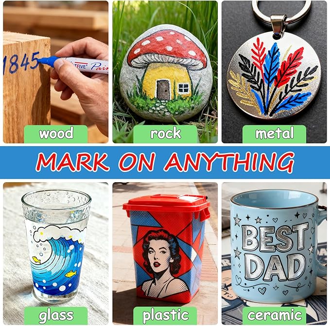 - Multipurpose: TFIVE oil markers can be used on multiple surfaces such as metal, rock, ceramic, wood, leather, plastic, rubber, canvas, stone, glass, pumpkins, mugs, tires, chalkboard, craft supplies, etc