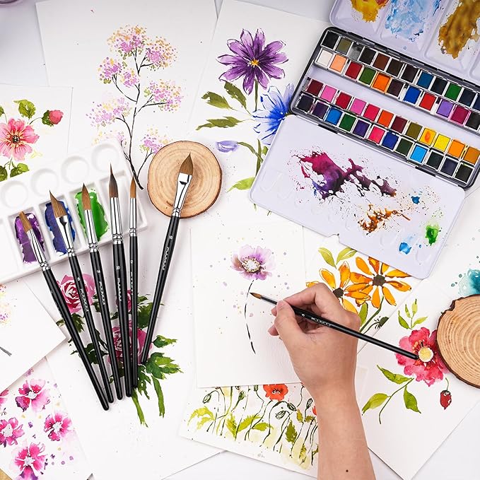 - High Absorption, Consistent Flow - Premium kolinsky sable watercolor brushes have great liquid holding capacity and ensure smooth paint flow; Perfect spring and shape-holding ability offers better control, Whether you're creating illustrations, landscapes, architectural sketches, sumi-e paintings, brush lettering, or rock art, they help bring your masterpiece to life with precision and control.