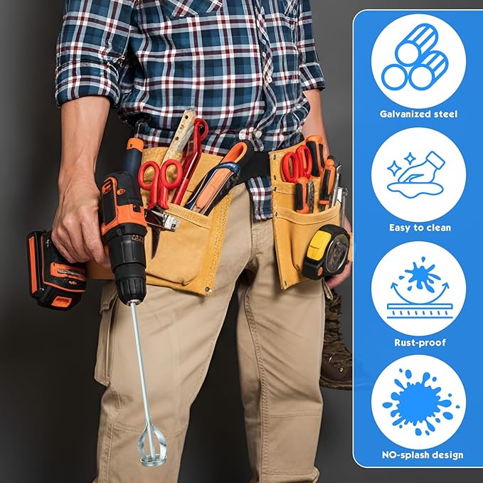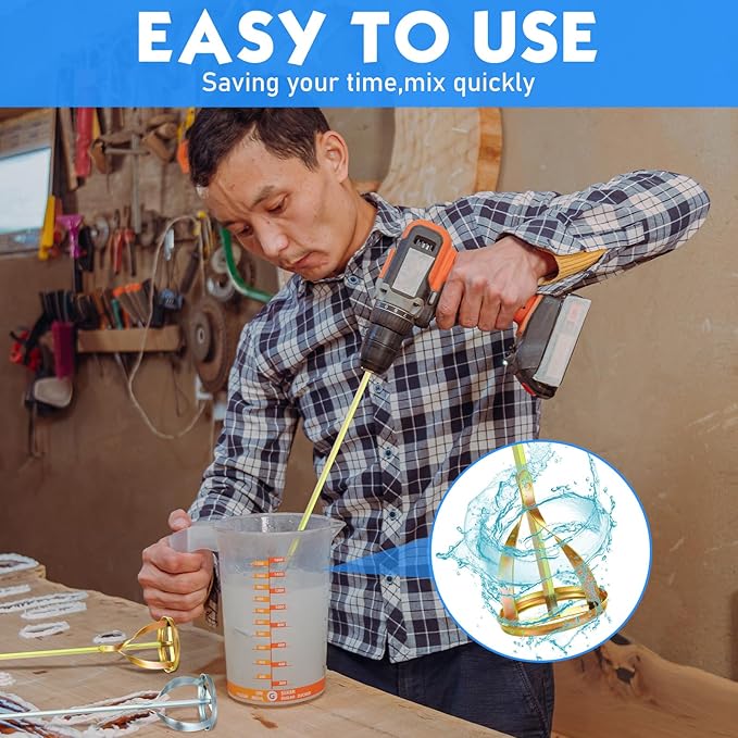 - Easy to Use and Clean in Seconds: simply attach to any standard drill, pour materials into the bucket, and let it mix evenly; To clean, just dip the mixer in clean water and run the drill—paint/residue comes off instantly, saving your time for next use