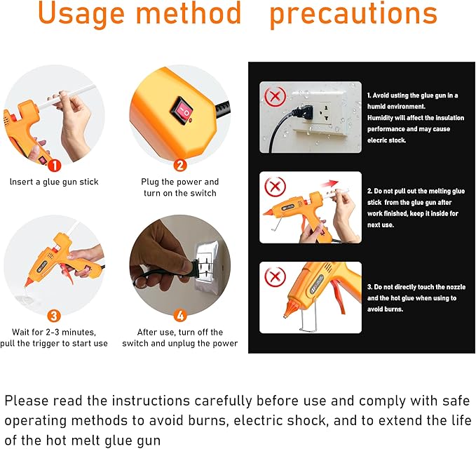 - 【Quick Heating & Strong Bond】 Achieves the ideal working temperature in just minutes. The hot melt adhesive provides a powerful, durable bond on wood, fabric, plastic, and more, making your creations and fixes last.