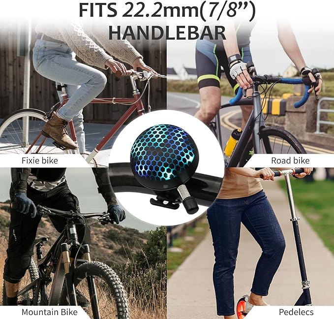- 5 Unique Sounds: Customize your ride with 5 distinct sounds to match your biking style. This bike bell for adults ensures you're always heard.