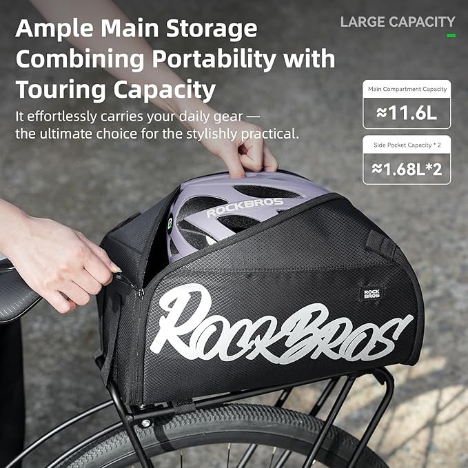 ROCKBROS Bike Bags for Bicycle Rear rack - 12L/15L Bike Ebike Trunk Pannier Saddle Bag with Shoulder Strap for Commuter Travel Outdoor Accessories Gear
