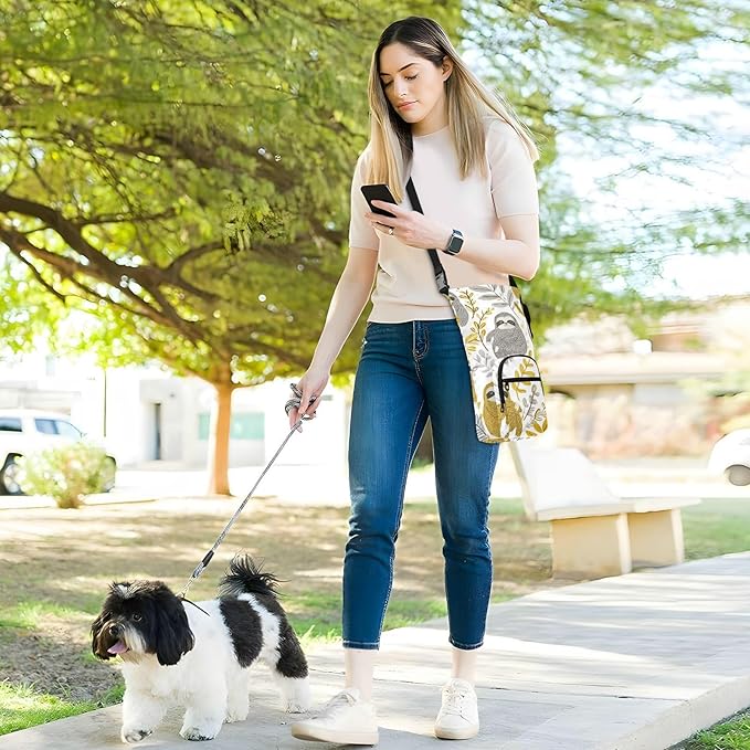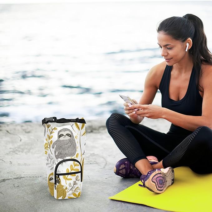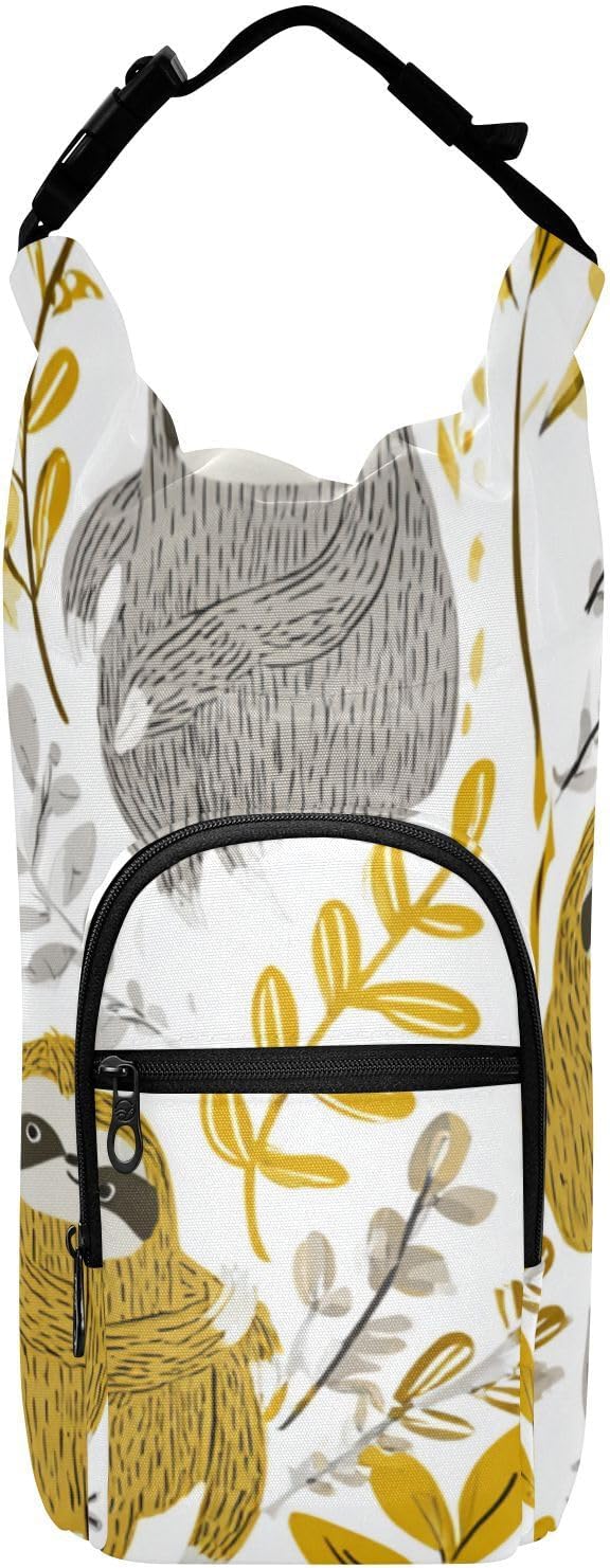Cartoon Sloths Leaves White Water Bottle Holder with Strap Insulated Water Bottle Carrier Crossbody Bags Pouch with Phone Pocket for Travel Gym Hiking Walking Running