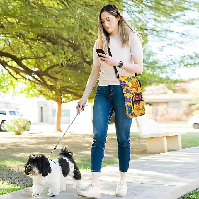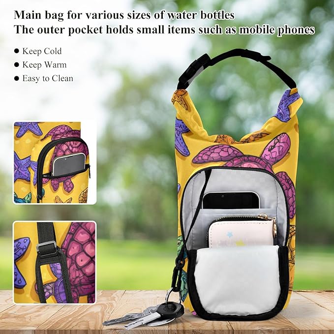 Colorful Turtles and Starfish Water Bottle Holder with Strap Insulated Water Bottle Carrier Crossbody Bags Pouch with Phone Pocket for Travel Gym Hiking Walking Running