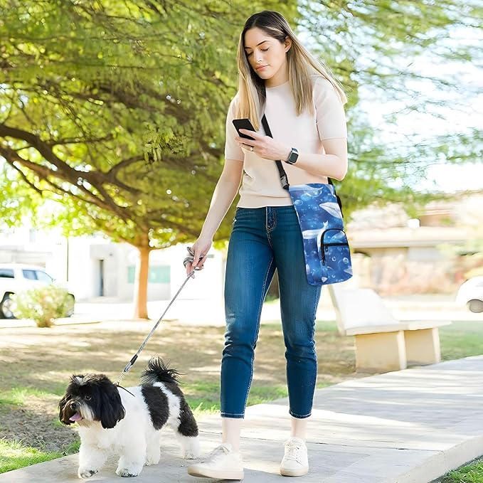 Blue Whales and Bubbles Water Bottle Holder with Strap Insulated Water Bottle Carrier Crossbody Bags Pouch with Phone Pocket for Travel Gym Hiking Walking Running