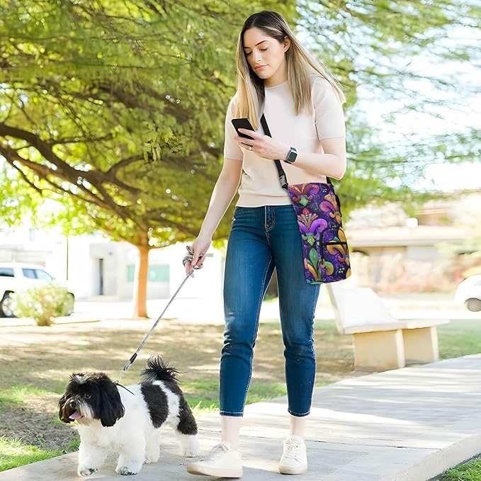 Pik Purple Mardi Gras Pattern Water Bottle Holder with Strap Insulated Water Bottle Carrier Crossbody Bags Pouch with Phone Pocket for Travel Gym Hiking Walking Running