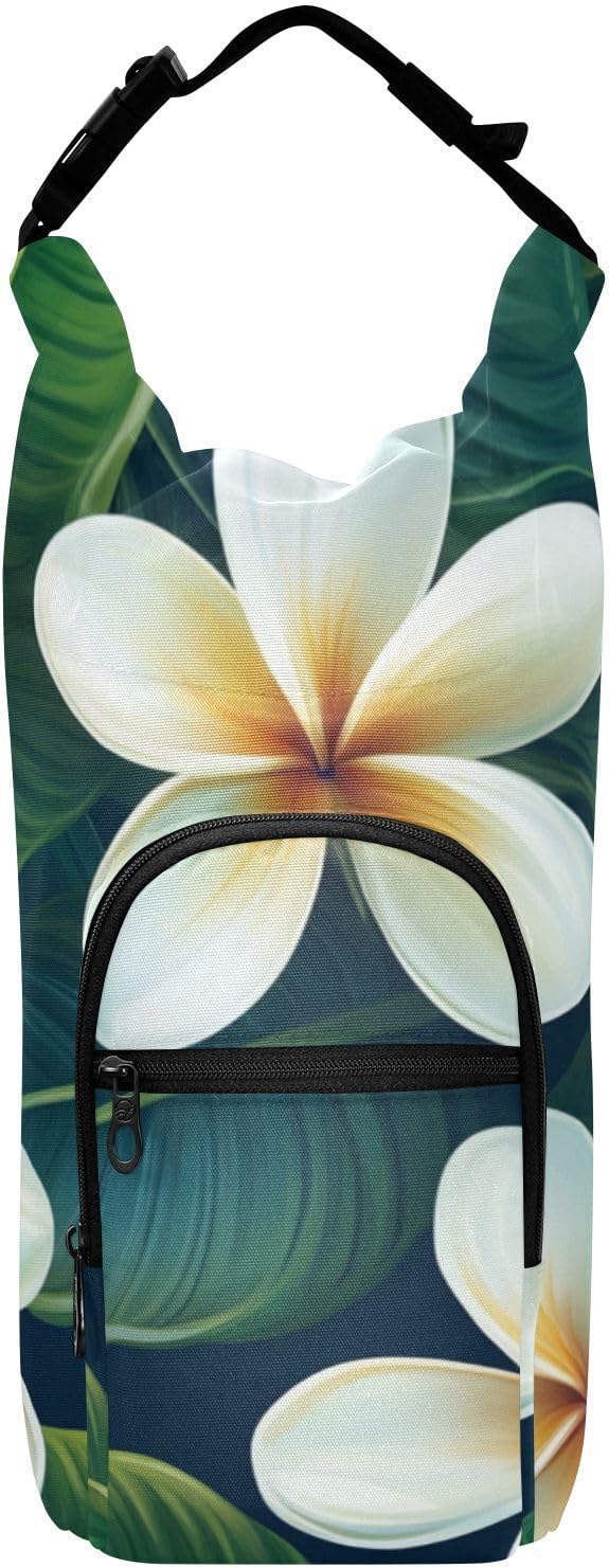 Tropical Plumeria Green Water Bottle Holder with Strap Insulated Water Bottle Carrier Crossbody Bags Pouch with Phone Pocket for Travel Gym Hiking Walking Running