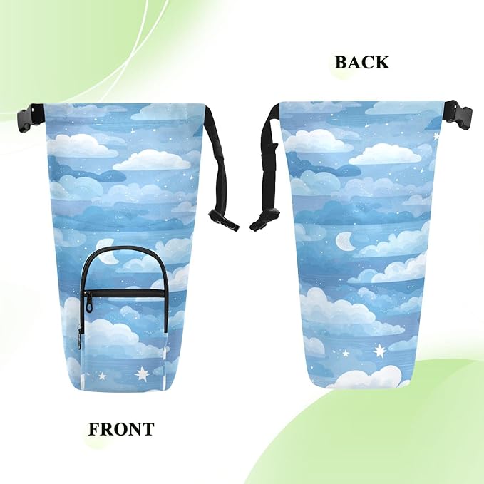 Blue Gradient Cloud and Stars Water Bottle Holder with Strap Insulated Water Bottle Carrier Crossbody Bags Pouch with Phone Pocket for Travel Gym Hiking Walking Running
