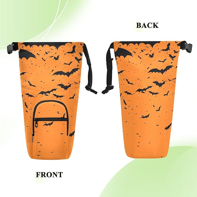Halloween Black Bats Orange Water Bottle Holder with Strap Insulated Water Bottle Carrier Crossbody Bags Pouch with Phone Pocket for Travel Gym Hiking Walking Running