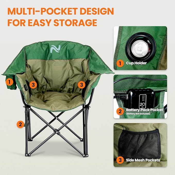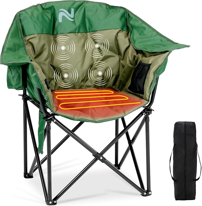 NAIZEA Heated Massage Camping Chairs,Heated Outdoor Chair w/3 Heating Mode, Oversized Heated Chair for Adults, Heavy Duty Folding Camping Chairs for Camp,Fishing, Sports Events,NOT Included Battery