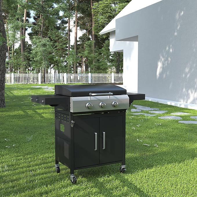 - 【Exceptional Performance】Our propane gas grill comes with 3 stainless steel burners that can generate a total of 360,00 BTUs, delivering outstanding heat distribution for even cooking. Reliable electronic ignition system offers quick startup with a simple push