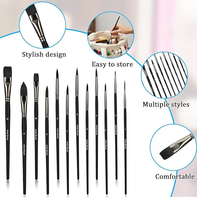 - 【Versatile Use】This acrylic paint brushes set is ideal for various mediums, including acrylics, oils, watercolors, and gouache. The paint brushes for acrylic painting are perfect for artists, hobbyists, and makeup enthusiasts alike.